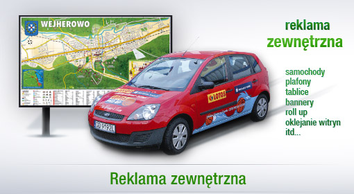 Bannery, roll up, oklejanie witryn, billboardy, mapy miast, koziołki PCV, ...
